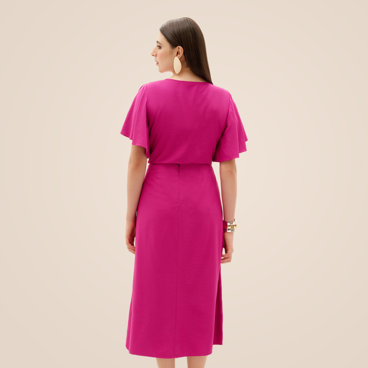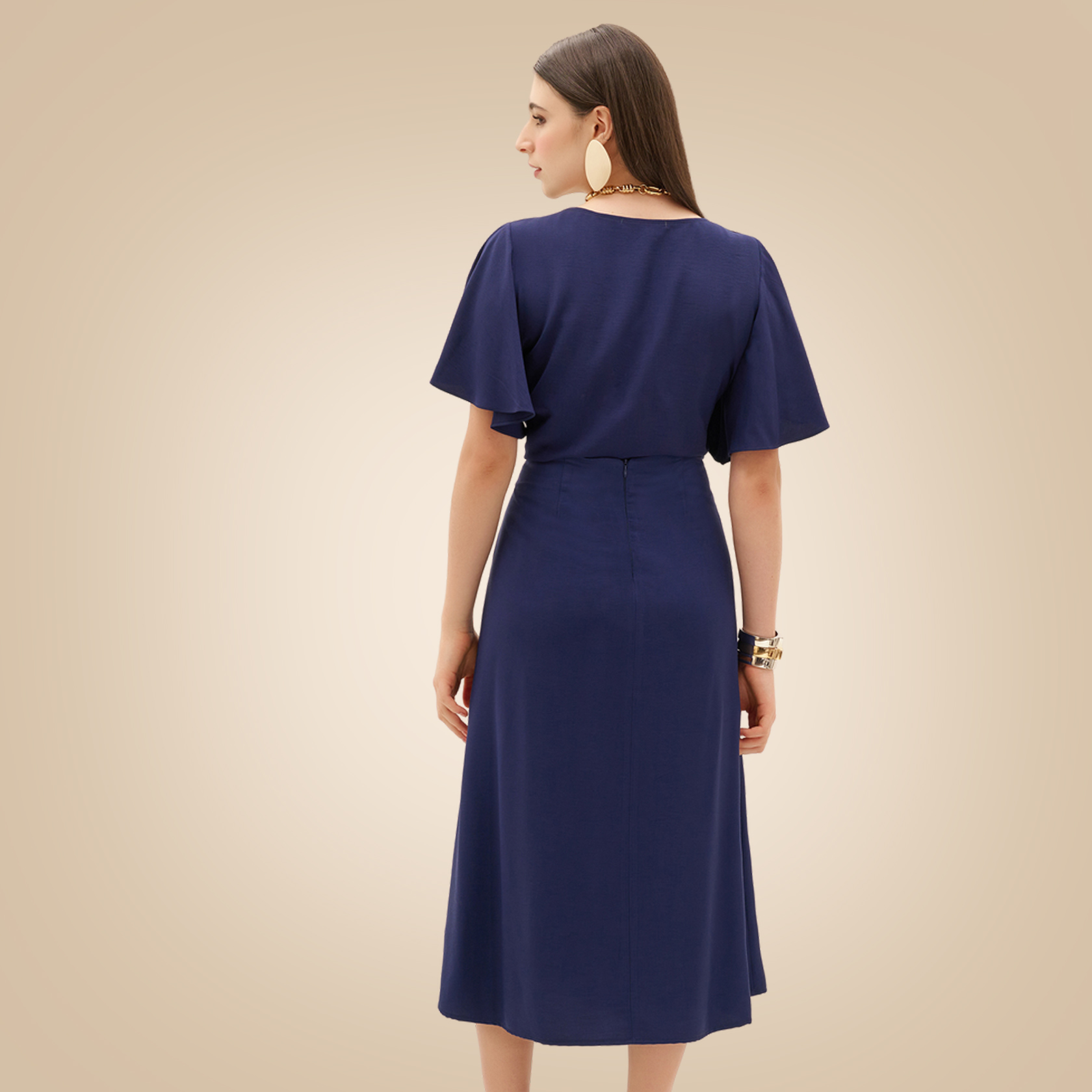 O Conjunto Feminino Midi Azul Marinho é a escolha ideal para mulheres que buscam elegância, sofisticação e conforto em um único look. Composto por blusa de manga ampla e saia midi social, ele é perfeito para trabalho, reuniões, eventos e ocasiões especiais. Sua modelagem sofisticada valoriza a silhueta com excelente caimento, proporcionando presença e confiança em qualquer ambiente. A blusa conta com decote em V que alonga o colo e traz mais feminilidade ao visual. As mangas amplas estilo flare oferecem leveza e movimento, enquanto a modelagem confortável garante ajuste suave ao corpo e um caimento fluido e elegante, ideal para quem deseja se sentir bem vestida ao longo de todo o dia. A saia midi possui comprimento clássico e atemporal, com cintura marcada que valoriza a silhueta feminina. O detalhe lateral decorativo acrescenta um toque de sofisticação, e sua modelagem alinhada proporciona ótimo caimento, contando ainda com fechamento discreto que mantém o acabamento refinado da peça. Confeccionado em tecido de toque macio e estrutura leve, o conjunto é confortável para uso prolongado e não marca excessivamente, garantindo segurança e elegância durante todo o período de uso. É a opção perfeita para ambiente corporativo, cultos, reuniões, eventos sociais, jantares e produções elegantes que exigem classe e discrição.